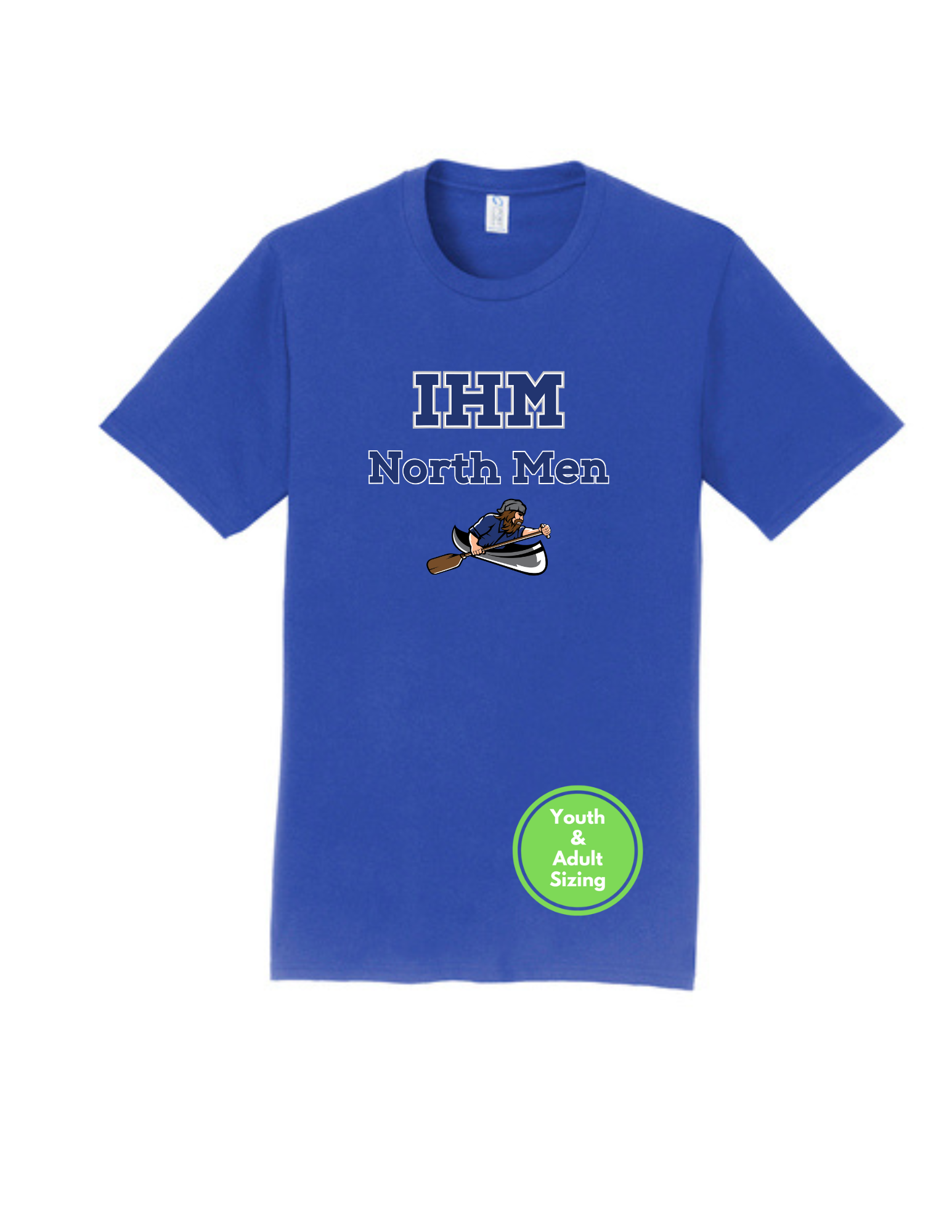 - 50/50 cotton/poly (Dark Heather Grey, Heather Navy)