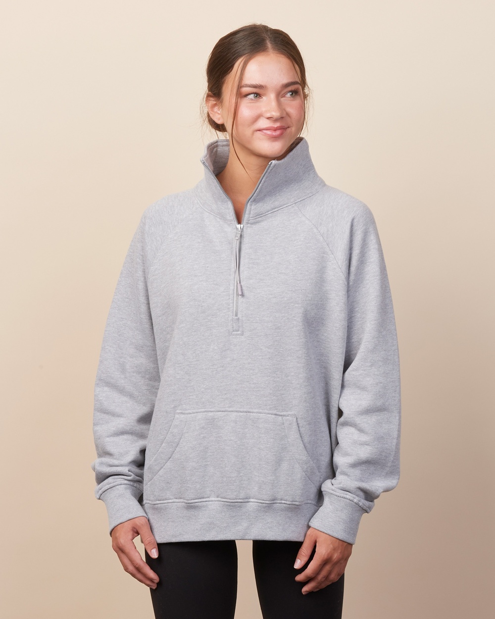 • Half zip extended cadet collar neckline with stylish zipper pull